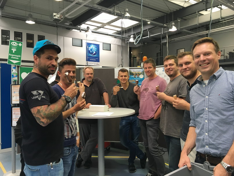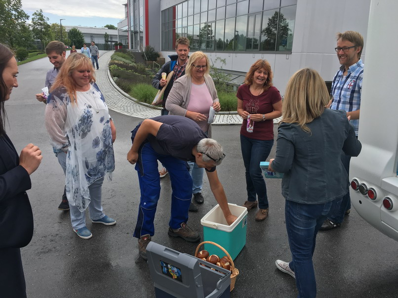 Juli 17 - Auch wenn es der Wettergott diesmal nicht gut mit uns meinte, war unser "Summer Splash" wieder der Hit. „Wir hatten für unsere Mitarbeiter und Kunden wie jedes Jahr eine leckere Überraschung: Eis am Stiel. Und wer Lust auf etwas Herzhaftes hatte, wurde von uns mit Laugenbrötchen verwöhnt“, erzählt Alexandra Schmid-Hofstätter und freut sich, dass die Überraschung gut angekommen war.