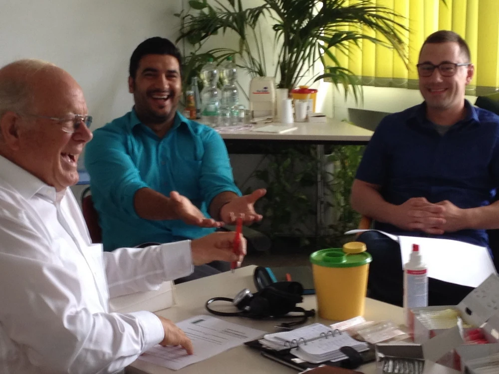 Hofmann-Betriebsarzt Dr. Burghart Vogelsang betreut Mitarbeiter vor Ort beim Kunden