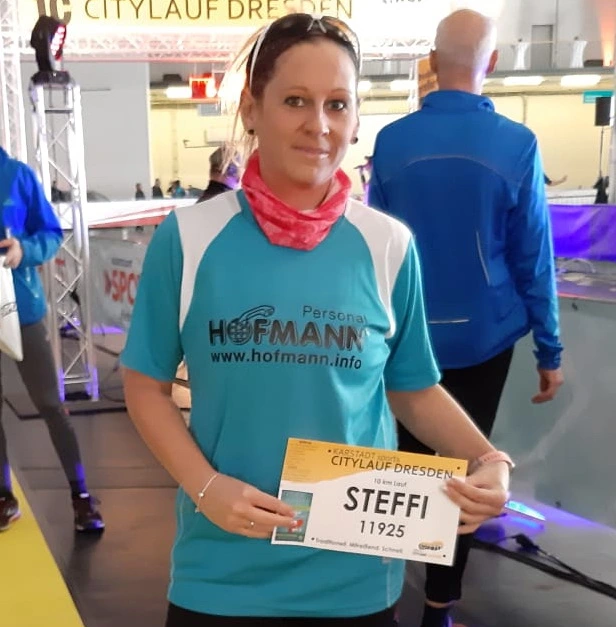 Im Rahmen des Hofmann -Spendenmarathons war Hofmann-Mitarbeiterin Steffi Dittrich beim Karstadt Citylauf in Dresden dabei