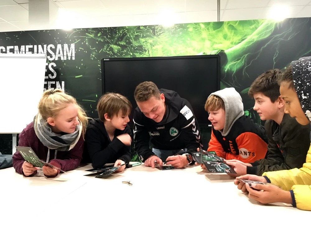 Hofmann Personal lädt Kinder des Don Bosco Jugendwerkes Bamberg zu einer Stadionführung bei der Spielvereinigung Greuther Fürth ein.