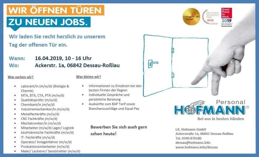 Informieren Sie sich über Ihre Karrierechancen. Wir laden Sie ein zum Tag der offenen Tür am 16. April 2019 von 10.00 Uhr bis 16.00 Uhr.