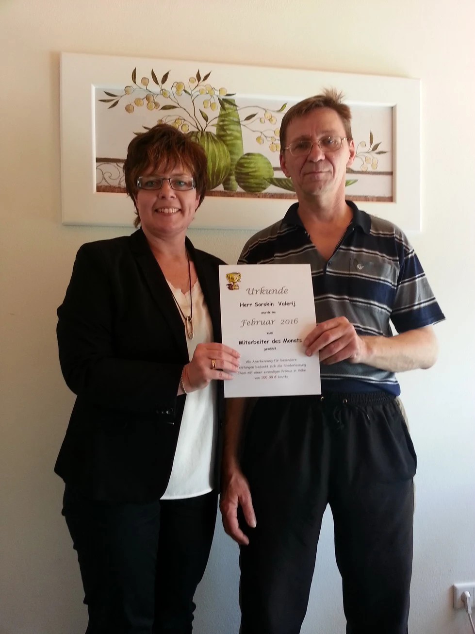 Danke schön an die Mitarbeiter des Monats. Sie haben diese Auszeichnung verdient