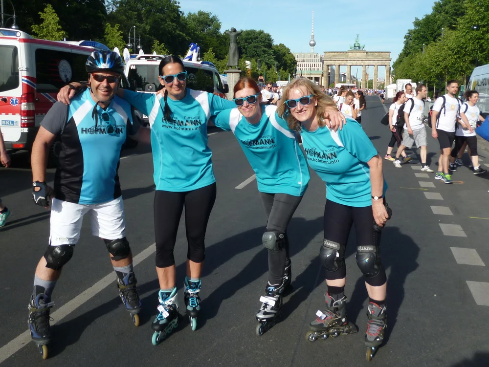 Mitarbeiter leben den Hofmann-Spendenmarathon, indem sie beim jährlichen Firmenlauf durch die Hauptstadt skateten, rannten und walkten