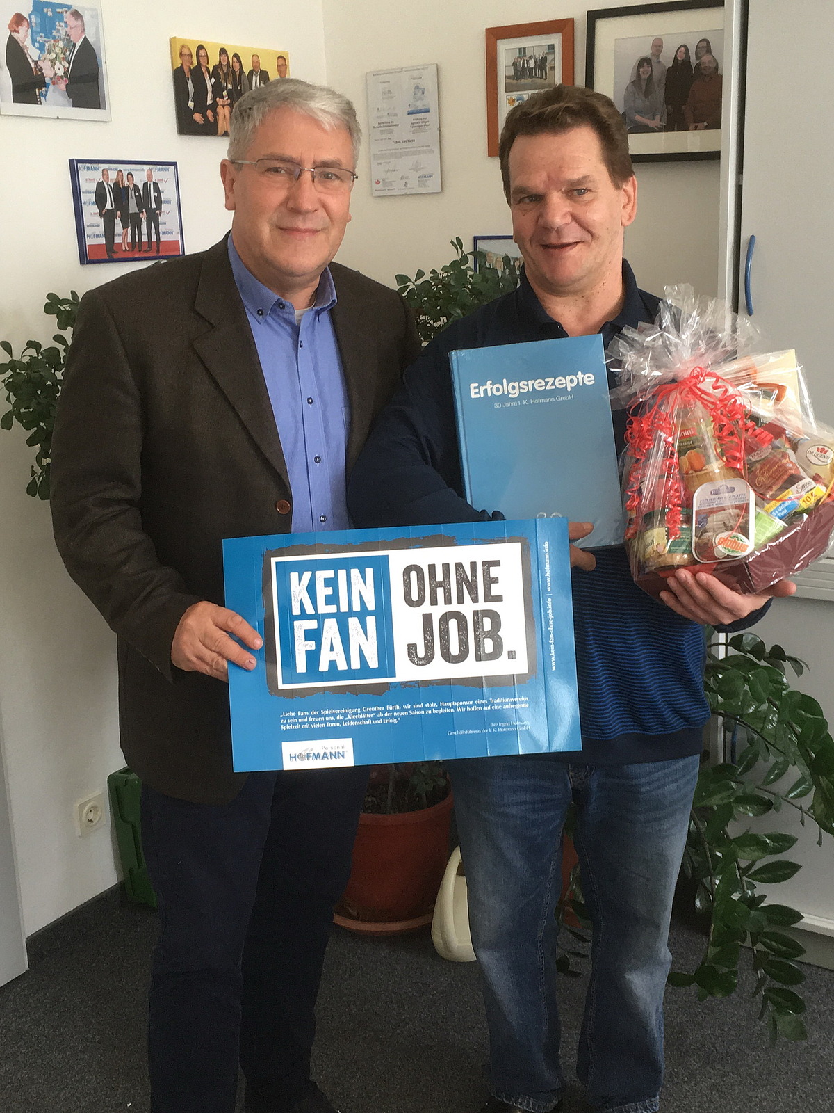 Seine Leidenschaft für Sport, insbesondere für Fußball, teilt Lutz Wettmann mit vielen Hofmann-Kollegen. Darum tritt unser Unternehmen nun verstärkt als Sponsor verschiedener Sportarten auf, verbunden mit der Kampagne „Kein Fan ohne Job“.