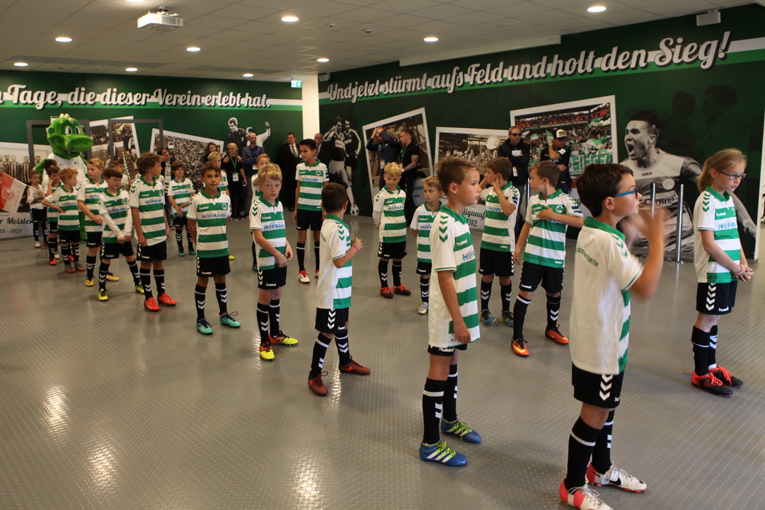 Oktober 18 - 26 Kinder zwischen sechs und zehn Jahren erlebten einen aufregenden Nachmittag bei der Spielvereinigung Greuther Fürth. Sie durften mit den Fußballprofis beider Mannschaften ins Stadion einlaufen und anschließend auf der Tribüne das Spiel verfolgen.