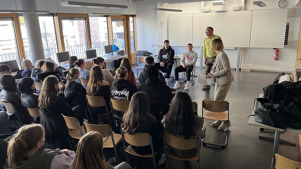 In den zwei Doppelstunden mit einmal zwei und einmal einer Klasse, entwickelte sich jeweils eine rege Diskussion rund um den Begriff „Fairness“, angefangen bei fundamentalen Fragen wie „Was bedeutet Fairness überhaupt?“ oder „Ist Fairness objektiv messbar?“. Leo Saffer und Vincent Friederici konnten hier immer wieder interessante Beispiele aus ihrem Leben als Basketballer nennen, bei denen unterschiedliche Sichtweisen zu Fairness oder fairem Umgang aufeinanderprallten und das nicht selten zu Konflikten führte. Die Schülerinnen und Schüler beteiligten sich engagiert und proaktiv an dem Austausch, stellten Fragen und stellten ihre Sichtweisen auf das Thema dar. Beide Einheiten wurden jeweils erst durch die Schulglocke beendet und hätten sicher noch länger dauern können.