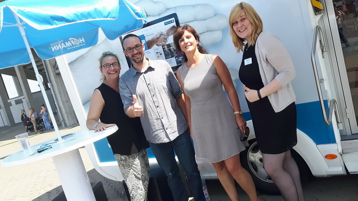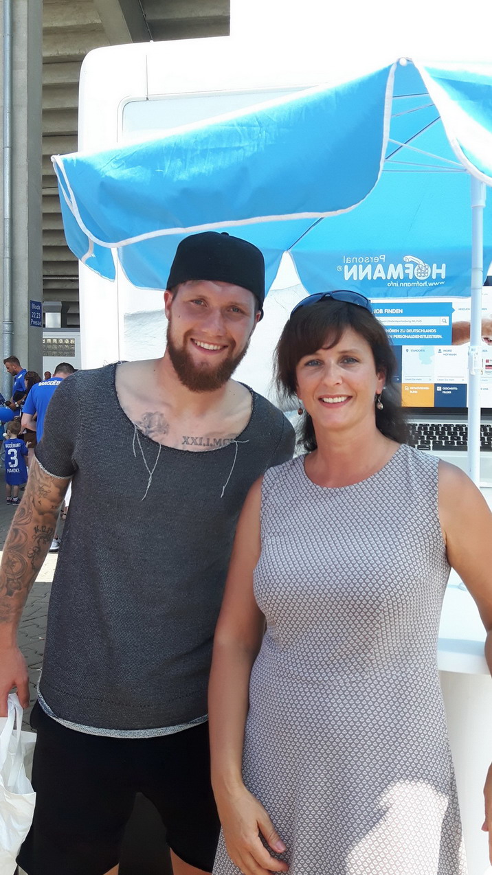 Juli 2016 – „Um Arbeitsuchende und Unternehmen zusammenzubringen, organisieren Arbeitsagentur und Jobcenter gemeinsam einen „Tag des offenen Stadiontors“. Wir nutzen das gerne, denn wir haben sehr viele offene Stellen und interessante Jobs“, erzählt Niederlassungsleiterin Annette Sperling. „5000 Besucher hatte das Stadion an diesem Tag zu verzeichnen. Wir führten über 100 Bewerbergespräche, mit dem Ergebnis, dass die ersten Einstellungen bereits erfolgt sind!“