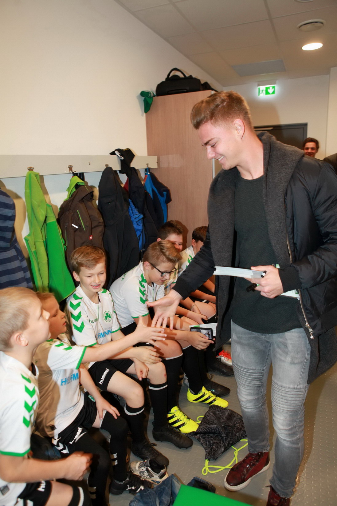 Oktober 17 - Welcher kleine Fußballfan wünscht sich nicht, einmal die Profis zu treffen und mit ihnen auf’s Spielfeld einzulaufen? Den Hiltpoltsteiner Kids wurde dieser Wunsch erfüllt, dank der Sponsorin der Spielvereinigung Greuther Fürth Ingrid Hofmann. Da sie eng verbunden ist mit ihrem Heimatort, wollte sie diesen Wunsch der kleinen Fußballfans erfüllen und ermöglichte ein Treffen in der Umkleidekabine der Fußballer, einschließlich Autogrammstunde und Zeit für gemeinsame Fotos. Und selbstverständlich durften die Kinder mit einlaufen.