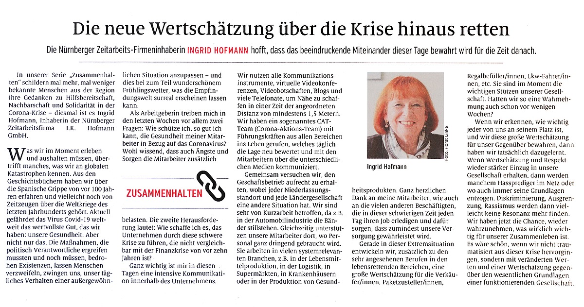 Wenn wir erkennen, wie wichtig jeder von uns an seinem Platz ist und wir diese große Wertschätzung für unser Gegenüber bewahren, dann haben wir tatsächlich dazugelernt. Wenn Wertschätzung und Respekt wieder stärker Einzug in unsere Gesellschaft erhalten, dann werden manchem Hassprediger im Netz oder wo auch immer seine Grundlagen entzogen. Diskriminierung, Ausgrenzung, Rassismus werden dann vielleicht keine Resonanz mehr finden. Wir haben jetzt die Chance, wieder wahrzunehmen, was wirklich wichtig für unserer Zusammenleben ist. Es wäre schön, wenn wir nicht traumatisiert aus dieser Krise hervorgingen, sondern mit veränderten Werten und einer Wertschätzung gegenüber den wesentlichen Grundlagen einer funktionierenden Gesellschaft.