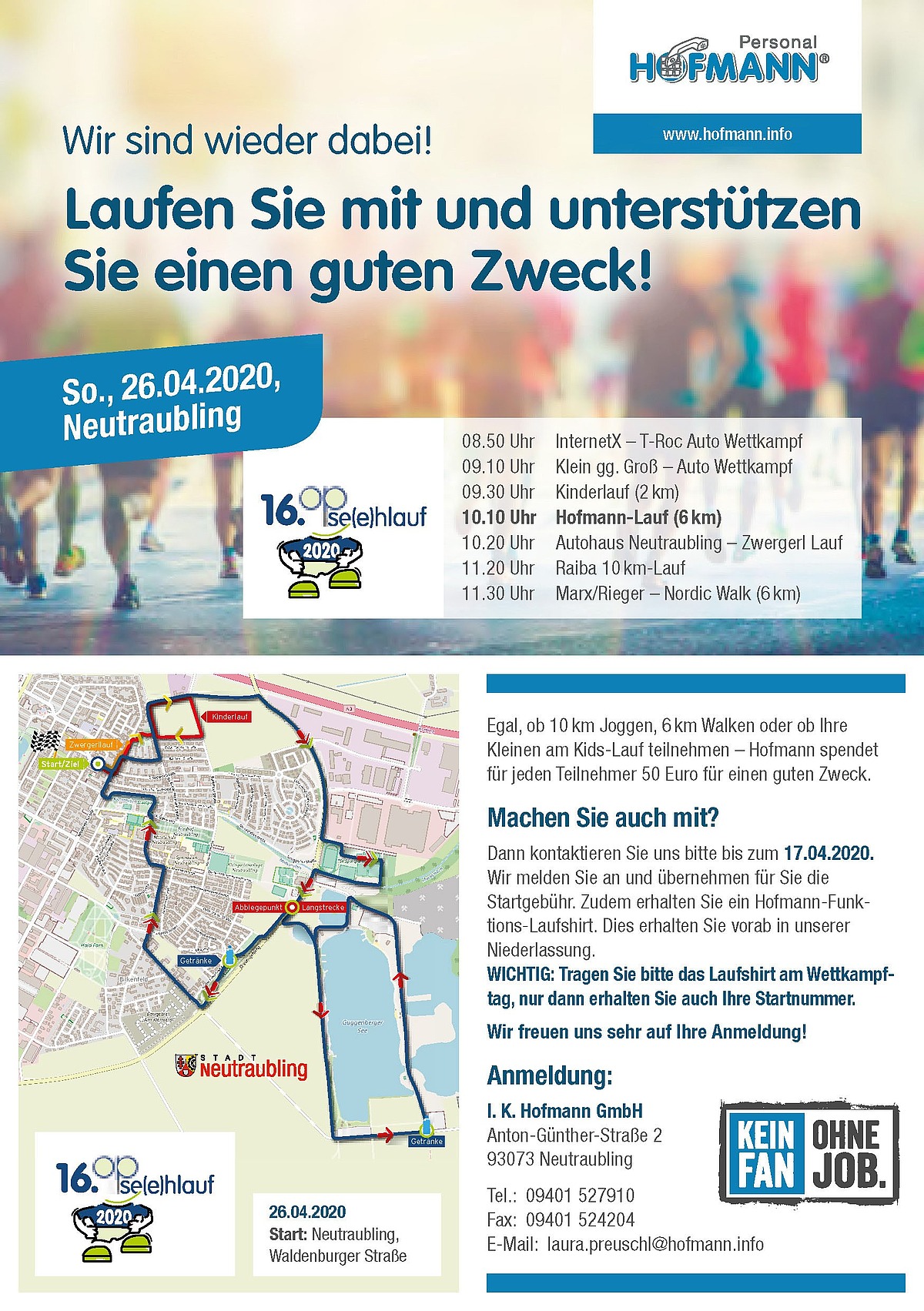März 2020 – Jedes Jahr sind wir dabei und laufen im Rahmen des Hofmann-Spendenmarathons für einen guten Zweck. Wir hätten Sie gerne eingeladen, mit uns zu laufen! Doch leider wird der Lauf aufgrund der wohl allen bekannten Situation nicht stattfinden. Das bedauern wir sehr! Alle Gute an Sie alle und bleiben Sie gesund!