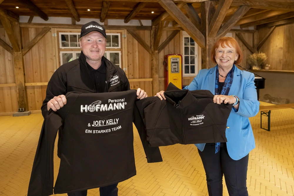 „Viel Erfolg“ wünscht Hauptsponsorin Ingrid Hofmann, die mit ihrer Familie beim offiziellen Trainingsbeginn der Spielvereinigung Greuther Fürth dabei war