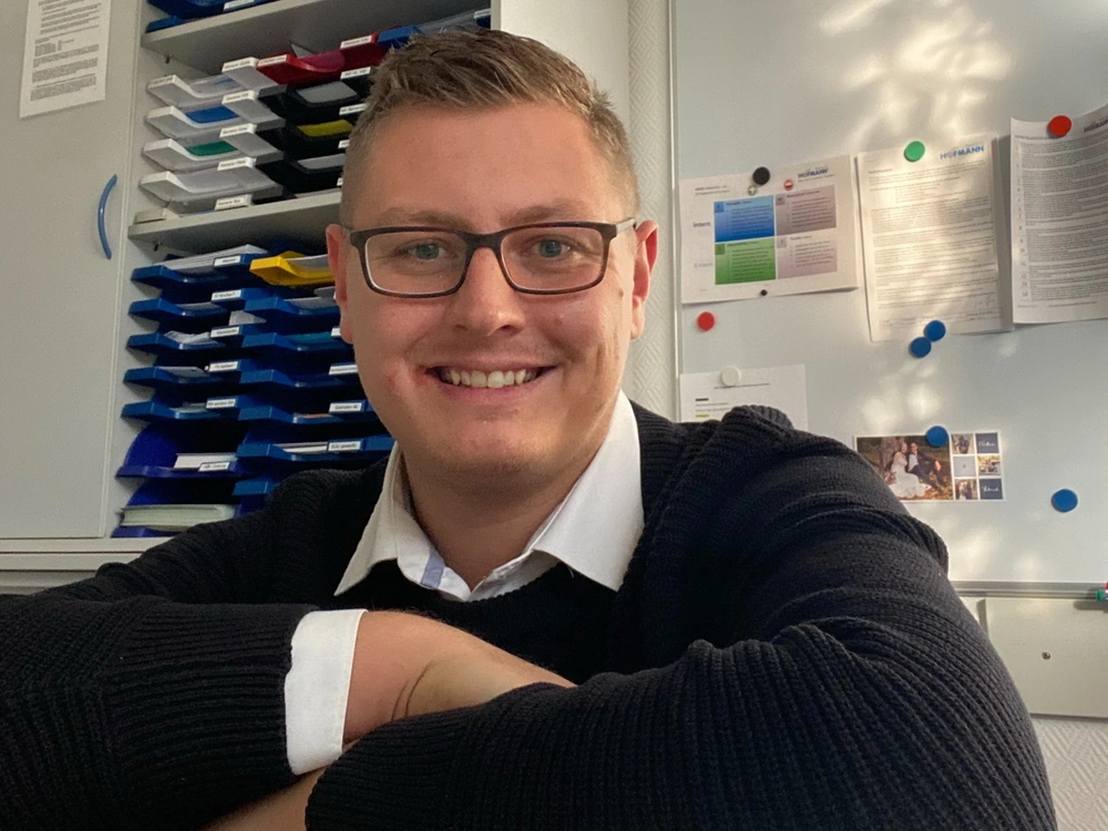 Charaktere bei Hofmann Personal – Dominik Meyer aus der Niederlassung Forchheim, 30 Jahre, wollte mal eine andere Branche kennenlernen und startete vor über einem Jahr in der Zeitarbeit als Personaldisponent