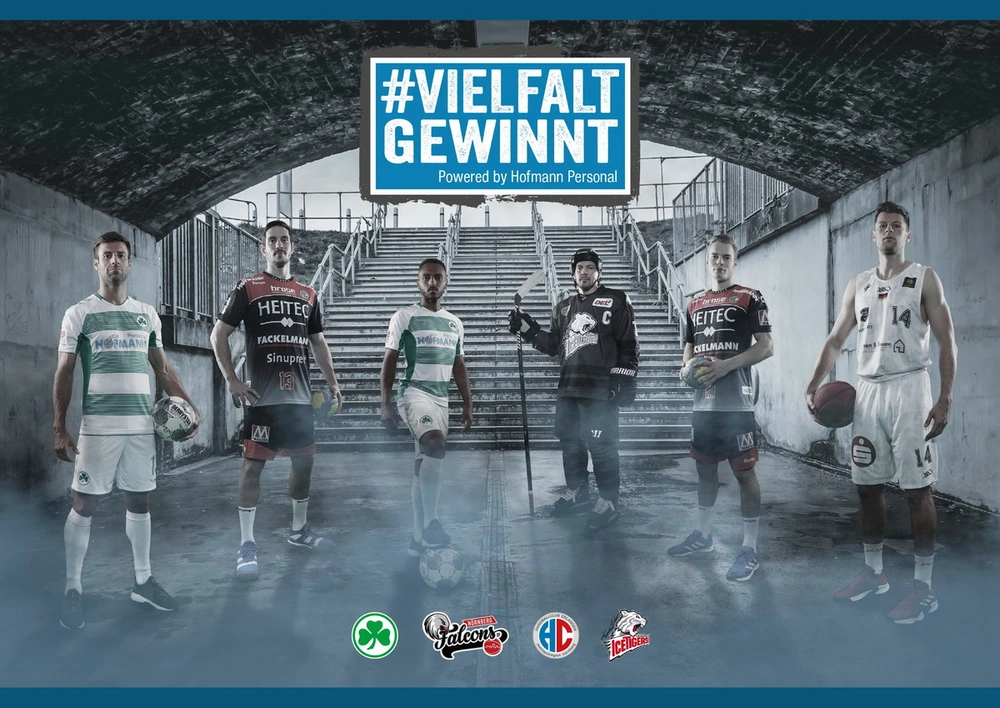 Gemeinsam mit den Profisportvereinen HC Erlangen, Nürnberg Falcons, SpVgg Greuther Fürth und den THOMAS SABO Ice Tigers starten wir die Initiative „Vielfalt gewinnt“. Zusammen möchten wir ein Zeichen setzen für ein gutes Miteinander und gegen Diskriminierung, Ausgrenzung und Rassismus.