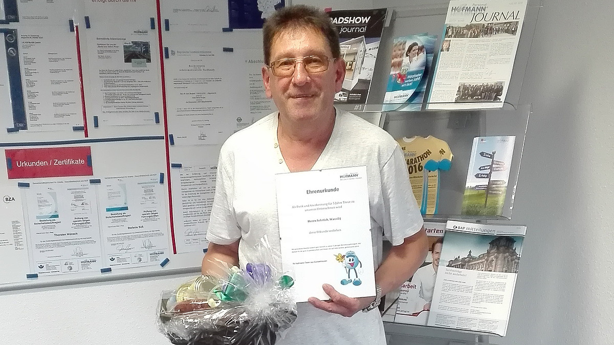 Juli 2016 – „Das Können zählt“, meint Personaldisponentin Stefanie Süß. Wassilij Solotich war 62, als er sich bei uns bewarb. Seine russische Ausbildung wurde in Deutschland nicht anerkannt, doch wir waren davon überzeugt, dass er kompetent ist. Inzwischen ist er seit fünf Jahren bei uns und macht einen tollen Job. Wir sagen danke schön an Wassilij Solotich für seinen engagierten Einsatz in den letzten Jahren!“