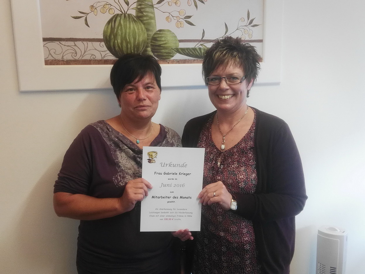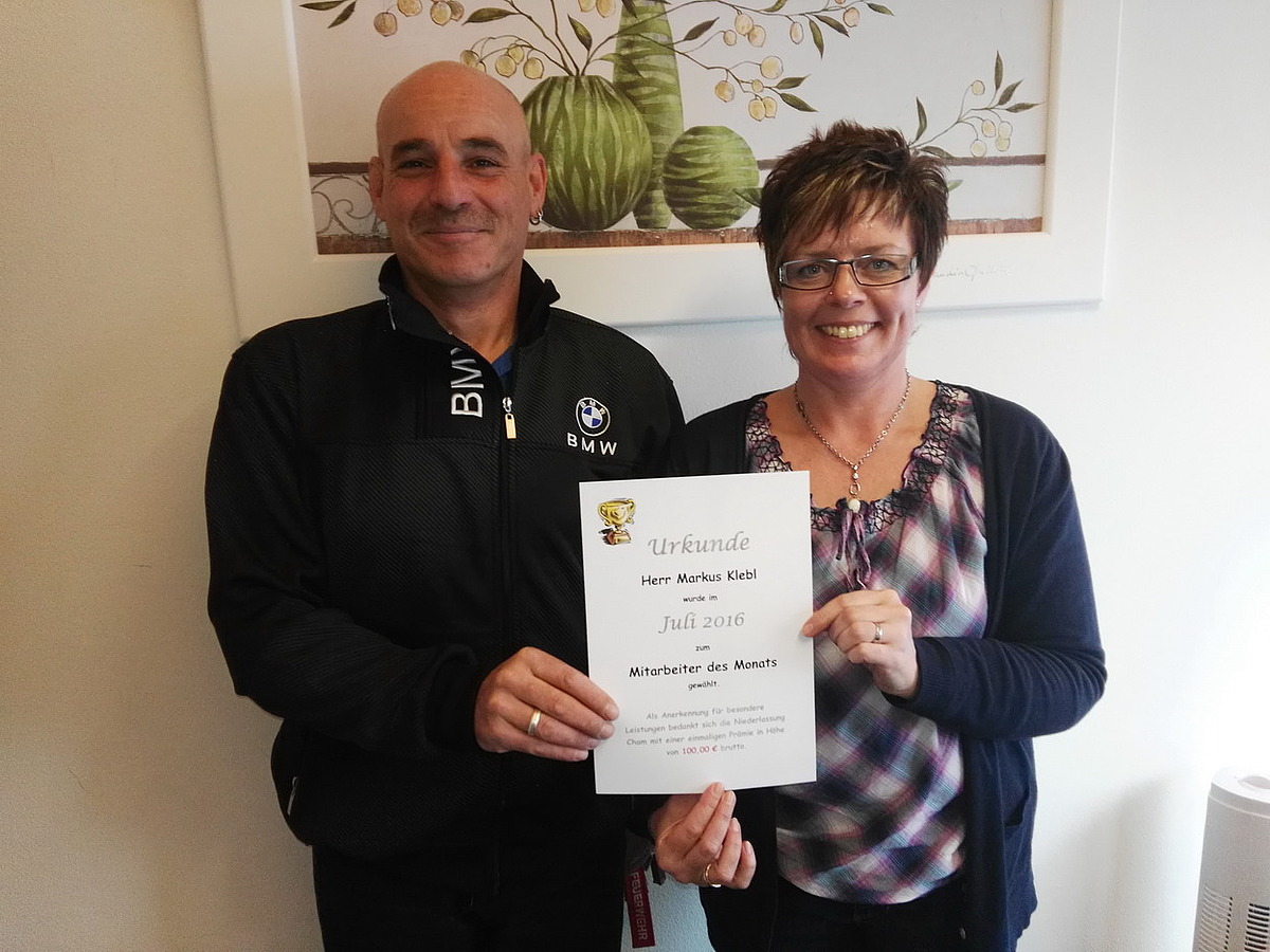 November 2016 – Personaldisponentin Alexandra Schmeidl ist sichtlich zufrieden. Sie stellt fest: „Ich hatte die Ehre, für die Monate Juni bis August wieder drei Mitarbeiter auszeichnen zu dürfen. Jeder Einzelne von ihnen macht einen tollen Job und wird von den Kunden immer wieder gelobt!“