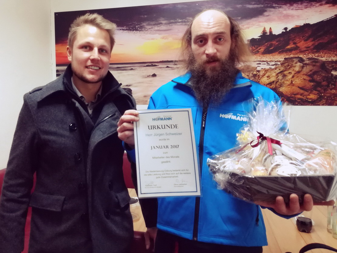 Januar 2017 – In Coburg gibt es wieder einen Mitarbeiter, der durch besonderen Einsatz überzeugte: Jürgen Schweizer