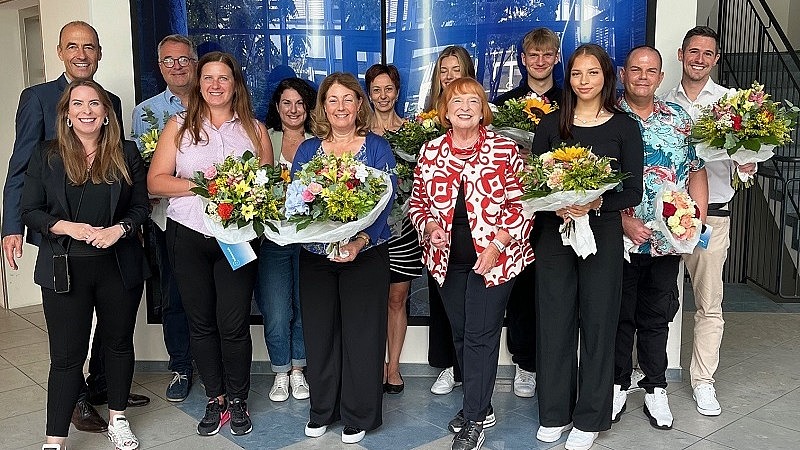 Doch damit nicht genug! Viele Mitarbeiterinnen und Mitarbeiter, die an einem 1. September in den vergangenen Jahren bei Hofmann Personal angefangen haben, wurden ebenfalls geehrt. Sieben von ihnen sind schon über 20 Jahre Mitglied der Hofmann-Familie. Ute Günther, Abteilungsleiterin für ASI und Einkauf, sowie Thomas Palsa aus der zentralen Lohnbuchhaltung bereichern Hofmann Personal sogar schon 32 Jahre mit ihrem Wissen und Können! Wirklich beeindruckend! Unsere Chefin Ingrid Hofmann bedankte sich bei allen für ihr unermüdliches Engagement und ihre gute Arbeit und überreichte ihnen jeweils einen wunderschönen Blumenstrauß.