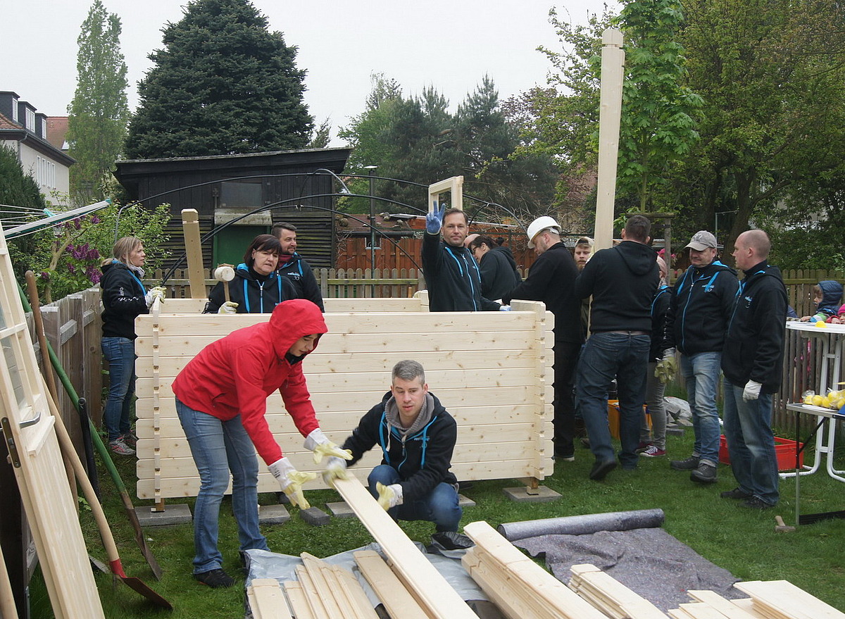 „Ich bin schon stolz auf meine Mitarbeiter, wenn ich sehe, wie gemeinsam angepackt wurde und dass diese tolle Gartenlaube daraus entstanden ist. Ein großes Danke schön an alle“, sagt Regionalleiter Marcus Gasch. Letztendlich hatten aber auch alle Spaß dabei. Großer Dank kam noch von der Kitaleitung und den Kindern, die für jeden der Helfer selbst gestaltete Schokolade vorbereitet hatten.