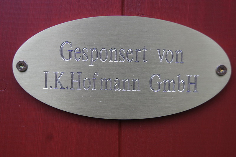 Wie beim klassischen Hausbau entstanden nacheinander Fundament, Rohbau und Dach. Türen und Fenster wurden eingebaut, der Fußboden gelegt und alle Teile fest miteinander verschraubt. Die Flächen bekamen einen bunten Farbanstrich und als optisches Highlight zierten vier spontan selbst gestaltete Bilder des Hofmann-Firmenmaskottchens „Jobby“ im Design der vier Jahreszeiten die Wände. Und nachdem alles fertig war, konnte diese einzigartige Gartenlaube an seine neuen Nutzer übergeben werden.