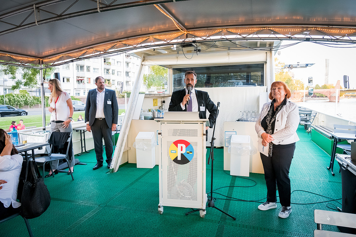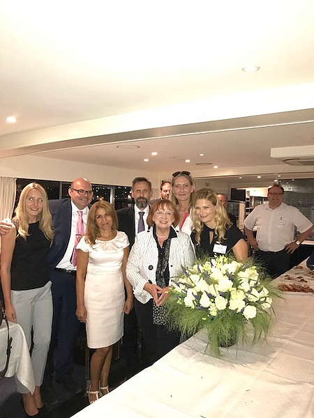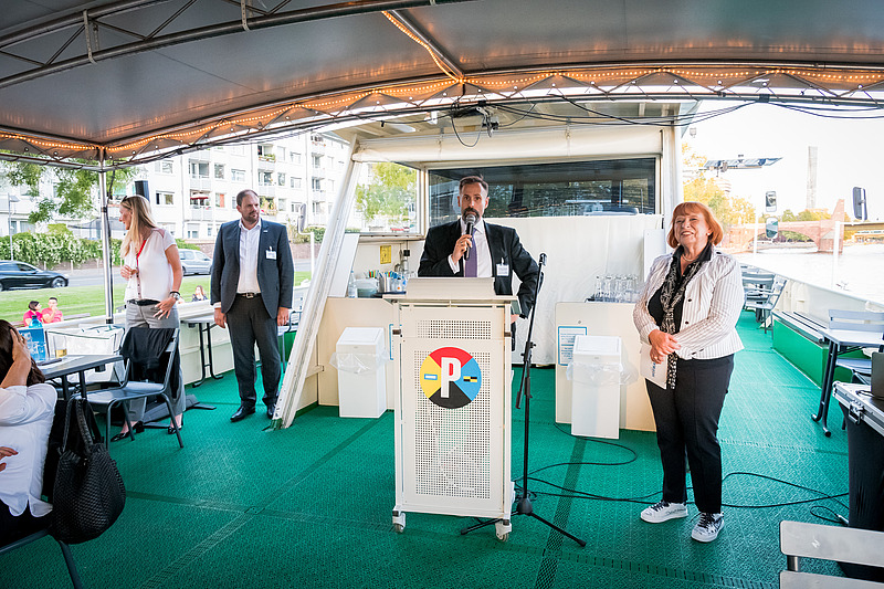 Es war ein Traumwetter – vermutlich einer der letzten wunderschönen warmen Sommerabende in diesem Jahr. Besser konnte es für eine abendliche Schifffahrt gar nicht sein.Die Gäste konnten es sich auf Deck in einer Lounge bequem machen. Wer Lust hatte, verfolgte den Vortrag von Dr. Peter Schirmbeck, der alte und neue Bauwerke entlang der Fahrstrecke erklärte.
