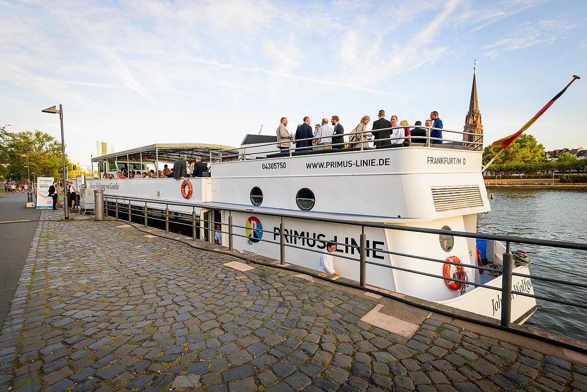 Route der Industriekultur Rhein-Main, bei einer Schifffahrt entlang des Mainufers, zu der wir unsere Kunden einluden.