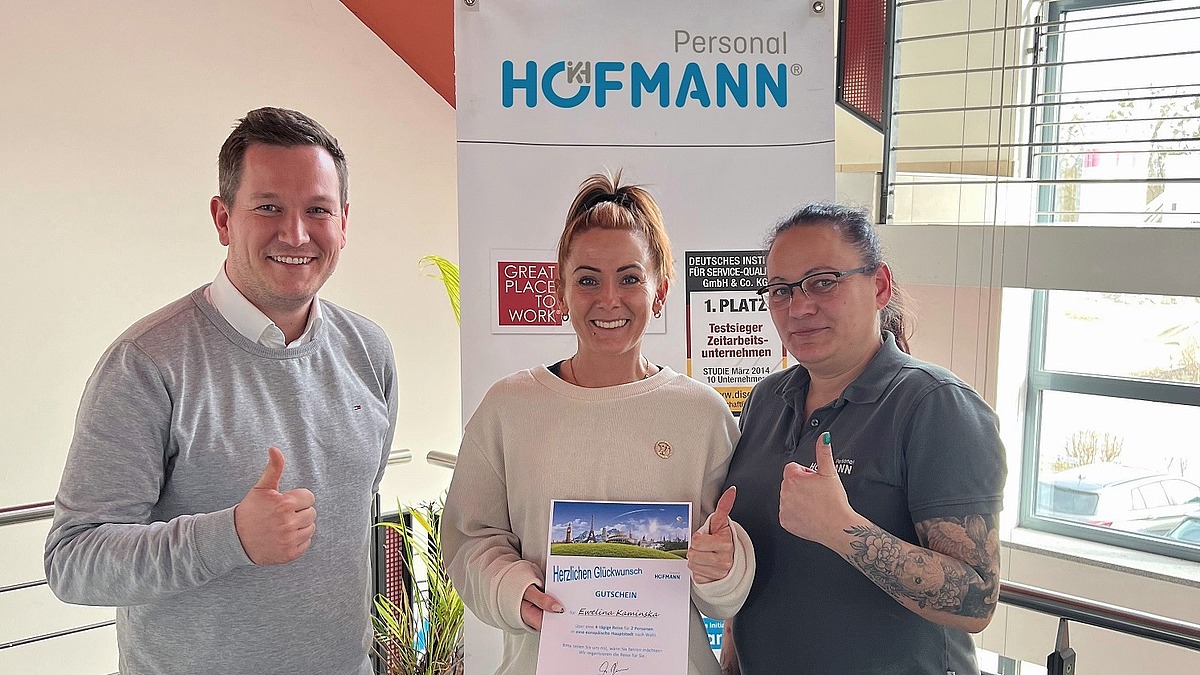 100 Euro Prämie und eine Reise für zwei Personen: Für Ewelina Kaminska hat es sich gelohnt, Hofmann Personal als Arbeitgeber weiterzuempfehlen.