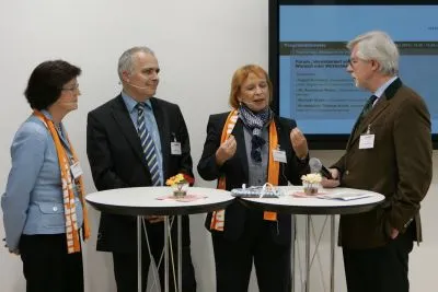 Diskussionsrunde am Stand der Bundesvereinigung der Deutschen Arbeitgeberverbände (BDA) auf dem Ökumenischen Kirchentag in München