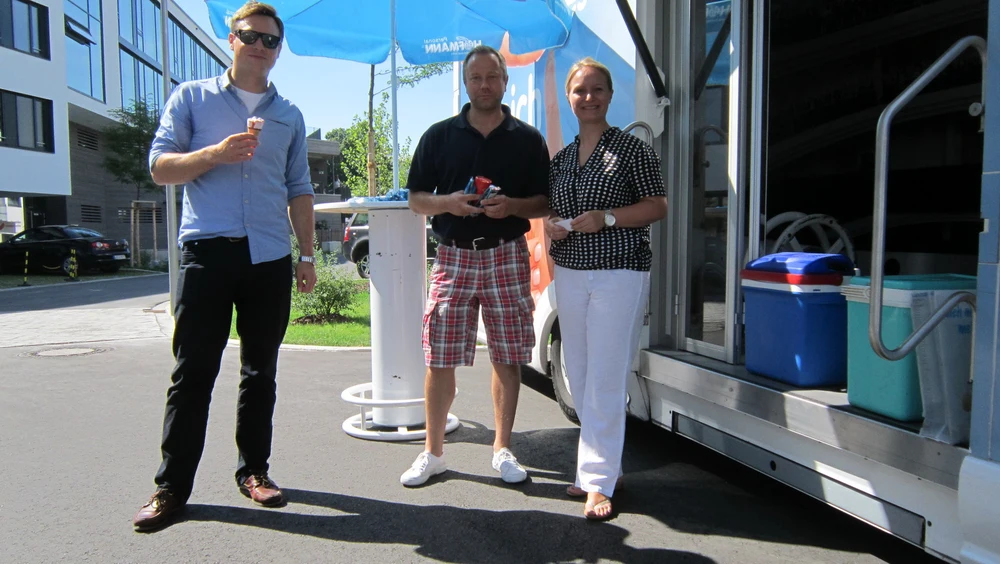 Rosenheimer Kollegen sorgen mit Eistour für Abkühlung bei Mitarbeitern, Kunden und Partnern