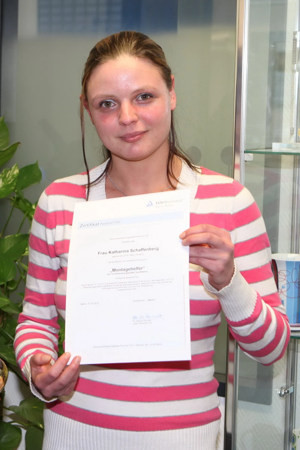 13 Mitarbeiter/innen der Niederlassung Schweinfurt haben ihr Personenzertifikat erhalten - ein Qualifizierungsprojekt, das Hofmann Personal gemeinsam mit dem TÜV-Rheinland umsetzt.