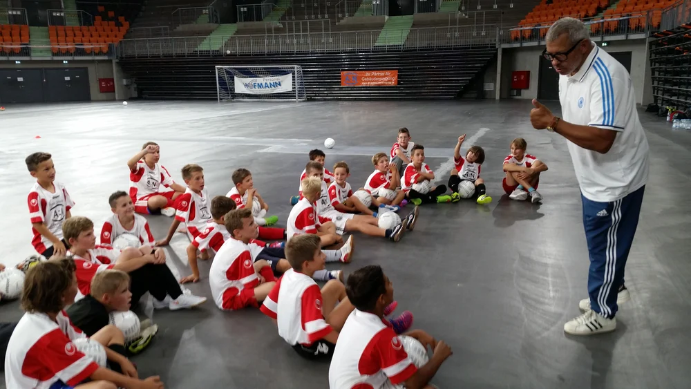 40 Kinder spielen u.a. Dank unserer Unterstützung mit Ex-Profis Fußball