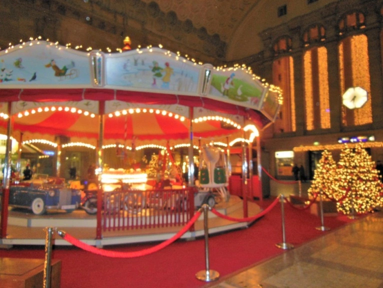 Mitarbeiter unterstützten beim Stollenverkauf und Aufbau eines historischen Karussells