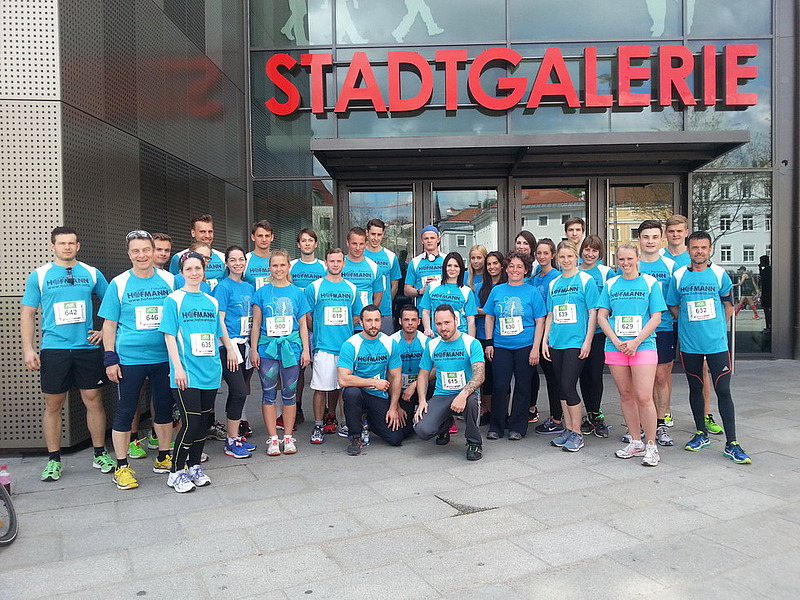 April 2015 - Im Rahmen des I. K. Hofmann Spendenmarathons lud die Niederlassung Passau ihre Kunden und Mitarbeiter nebst Familien zum 16. DJK Domlauf in Passau ein. Auch Ärzte der Kinderklinik konnten die Kollegen für den Lauf begeistern, die mit ihrer Teilnahme die Aktion unterstützten.