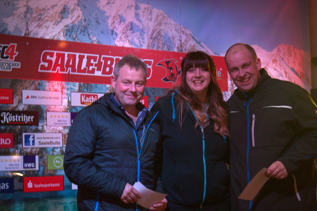 Aufgewärmt durch einen Begrüßungssekt und gestärkt durch ein gutes Essen wurden zunächst die Nachwuchsläufer bewundert. Anschließend ging es dann selbst auf’s Eis, um beim Eisstockschießen zu zeigen, was man drauf hatte. Schließlich warteten auf die fünf besten Spieler Freikarten für die kommende Saison der Saale Bulls.