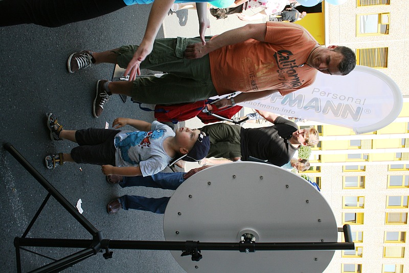 So bildeten sich Schlangen am Jobmobil, denn viele der ca. 3000 Besucher wollten mitmachen. „Dank vieler unterschiedlicher Preise ging natürlich niemand leer aus“, erzählt Georg Kaske und Sabine Schütz ergänzt: „Jung und Alt hatten ihre Freude am Glücksrad. Denn wer das richtige Feld erwischte, erhielt einen netten Sachpreis aus unserer Tombola.“