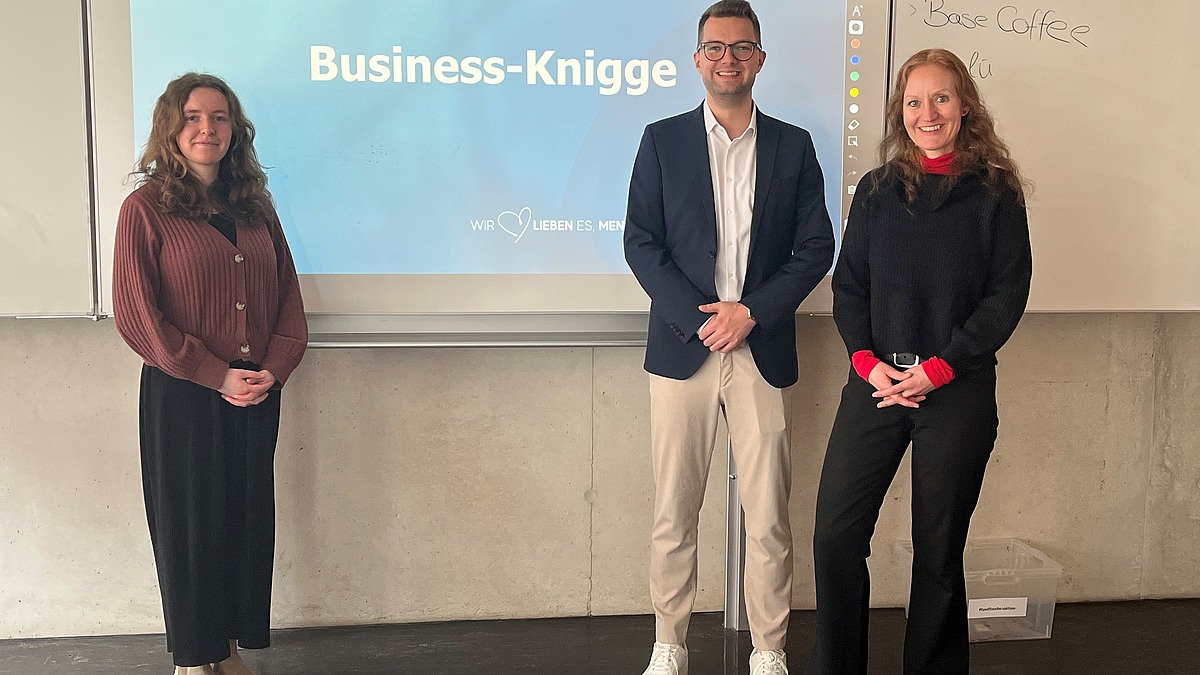 Bereits zum zweiten Mal in Folge war die I. K. Hofmann GmbH Teil der Projektwoche „Fit for Life" an der Berufsschule 9 in Nürnberg. Die Projektwoche bietet den Schülerinnen und Schülern jedes Jahr die Möglichkeit, sich in verschiedenen Vorträgen und Workshops mit gesundheitlichen sowie beruflichen Themen auseinanderzusetzen. In diesem Rahmen leiteten Dr. Katja Salomon, Laura Summerer und Dennis Dietl einen Workshop zum Thema „Business Knigge" – wie gelingt modernes Auftreten und professionelles Verhalten im Berufsalltag? Insgesamt zwei Schulklassen aus dem Bereich Kaufleute für Büromanagement nahmen an diesem Programm teil.