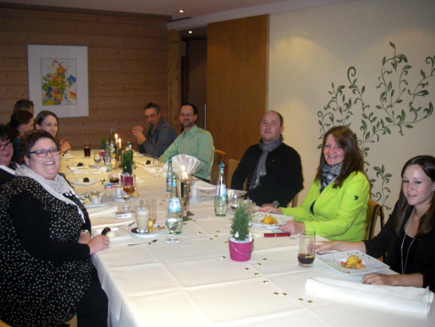 November 2014 – Wie ist das Jahr gelaufen und was steht im nächsten Jahr an? Diese und viele andere Themen besprach das Marktheidenfelder Team mit seinen Kunden bei einem netten Abendessen. „Wir möchten natürlich wissen, inwieweit die Kunden mit unserer Arbeit zufrieden sind. Genauso interessiert uns, wie die Auftragslage der Firmen ist und inwieweit wir mitarbeiten können. Ein nettes Abendessen bietet dafür den richtigen Rahmen. Außerdem konnten wir uns auf diese Weise für die wirklich gute Zusammenarbeit bedanken“, berichtet Büroverantwortlicher Tobias Prietzel.