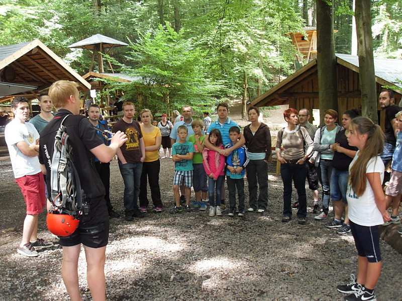 Unter diesem Motto lud das Niederlassungsteam anlässlich des 30-jährigen Firmenjubiläums zu einem gemeinsamen Event. Die Mitarbeiter durften sich nebst ihren Familien auf ein außergewöhnliches Abenteuer gefasst machen, denn auf dem Programm stand Hochseil-Klettern im Waldklettergarten. Keine leichte Übung, denn dieser ist mit künstlichen Hindernissen aus Holz, Seilen, Stahlkabeln, Rutschen und Hängebrücken, die bis zu 16 Meter hoch waren, ausgerüstet.