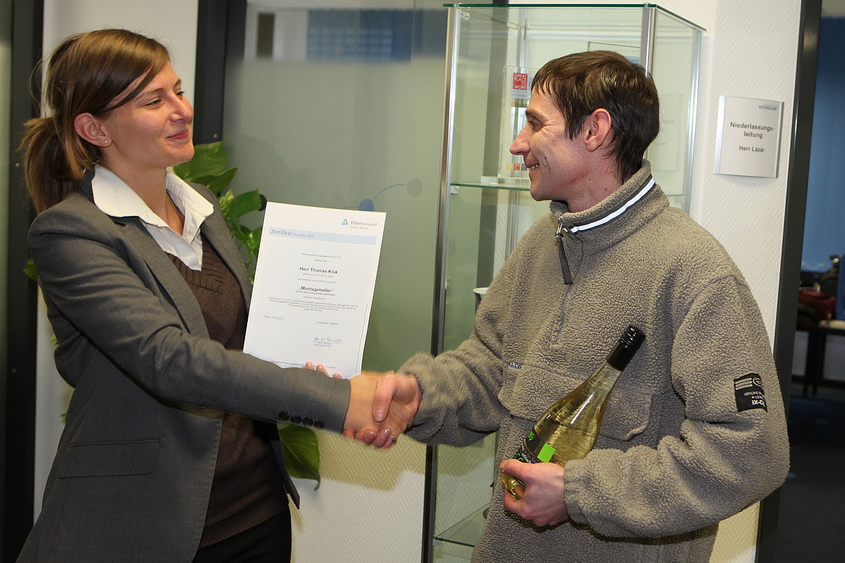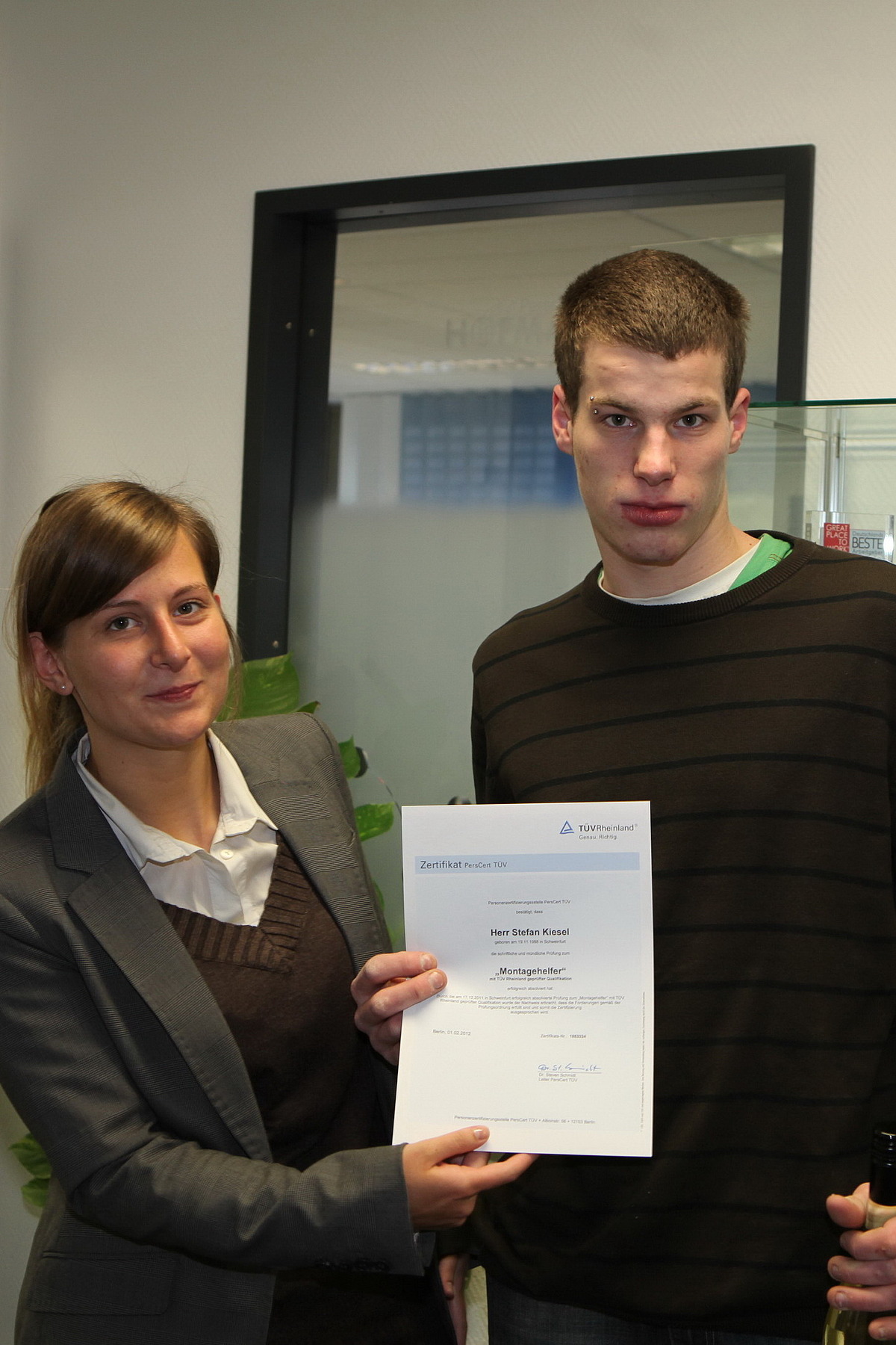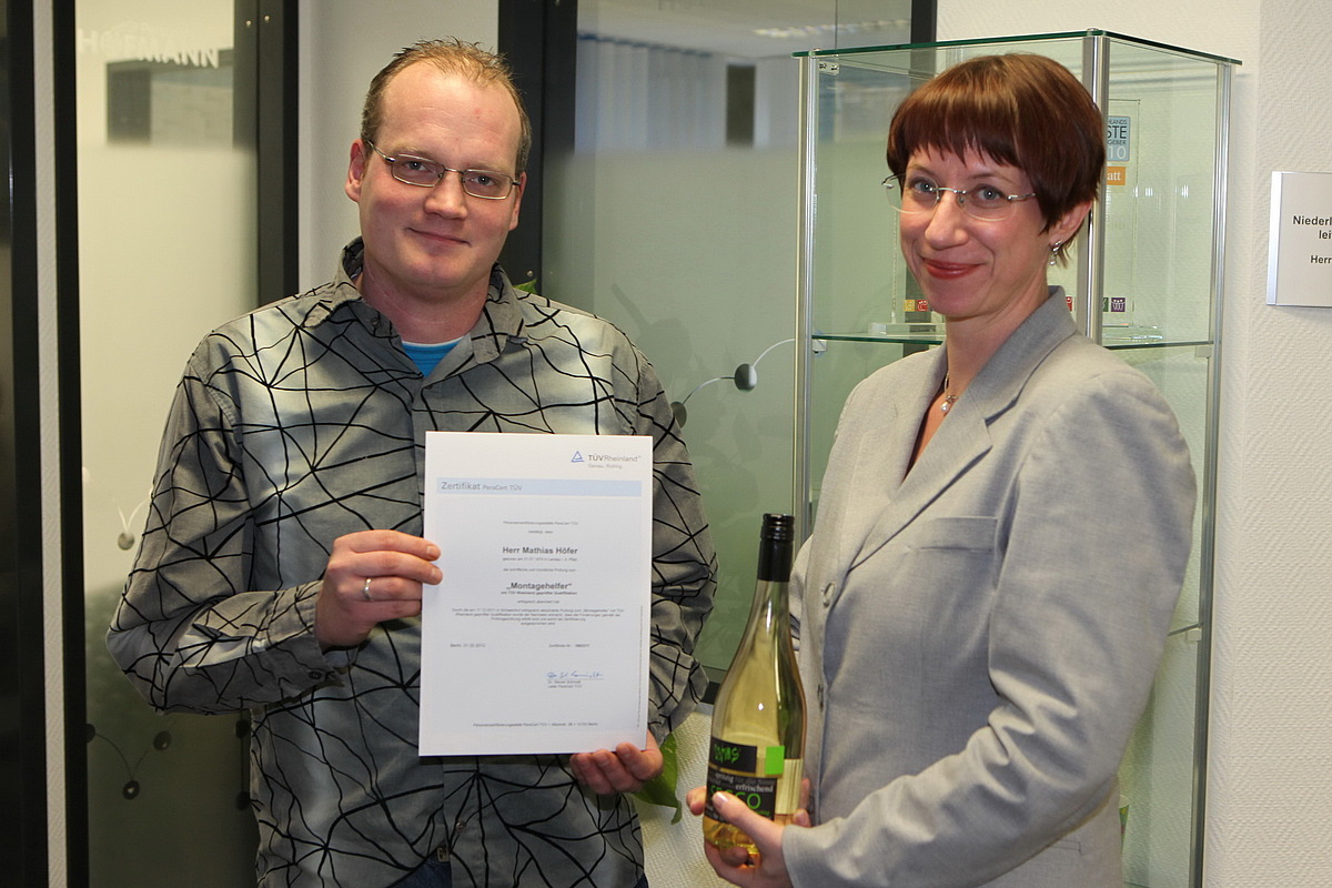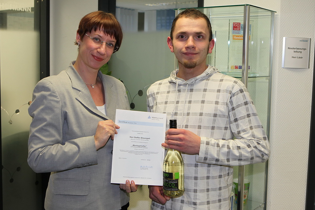 Mit Schulungen und einer Prüfung durch den TÜV Rheinland bietet Hofmann Personal seinen Zeitarbeitsmitarbeitern die Möglichkeit, ihre während der Arbeitseinsätze erworbenen Kenntnisse nachzuweisen und durch ein unabhängiges Institut zertifizieren zu lassen.