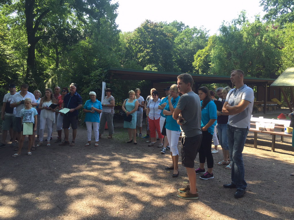 Anschließend ging es zum vorbereiteten Grillplatz, wo im Rahmen einer spannenden Glücksradverlosung zünftiges Essen und kühle Getränke auf die Teilnehmer warteten.