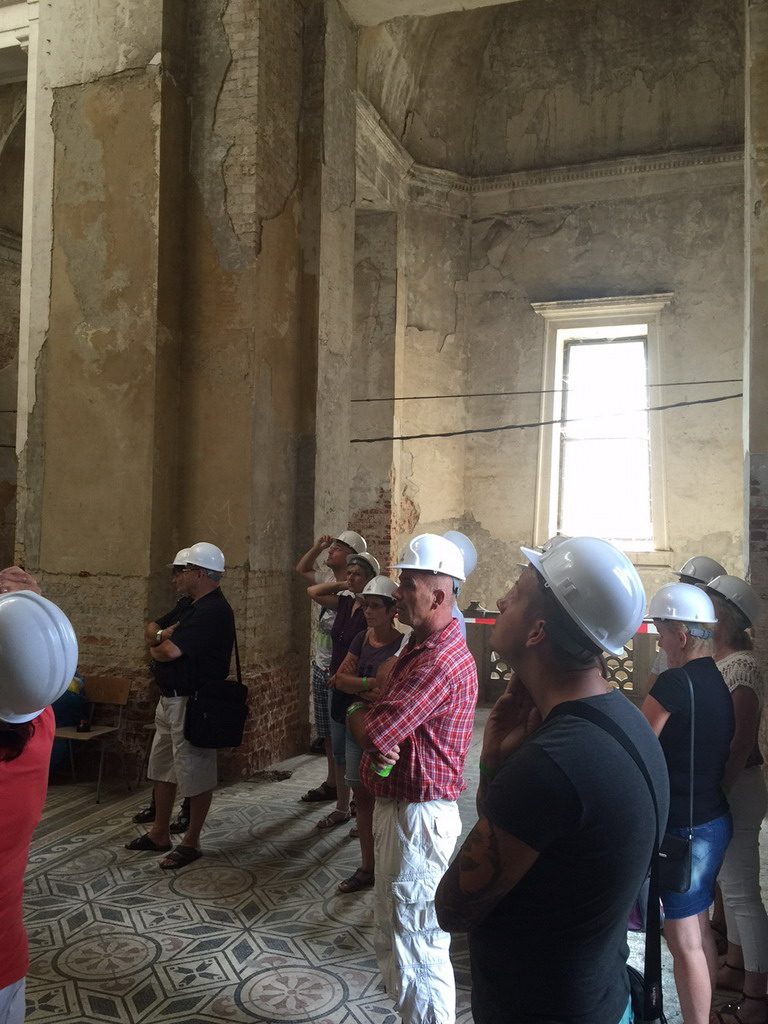 Zwei Herren des Fördervereins Mausoleum gaben den Gästen erstmals Einblick in das Gebäude und erläuterten bei dem geführten Rundgang die spannende Geschichte des Kuppelbaus. So erfuhren die interessierten Besucher unter anderem, dass die Kuppel mit einem Durchmesser von 14 Metern von 1894 bis 1898 im Stil der Hochrenaissance errichtet wurde und der Grundriss des Zentralbaus einem griechischen Kreuz entspricht. Das denkmalgeschützte Mausoleum ist seit dem Zweiten Weltkrieg Dessaus letzter Kuppelbau.