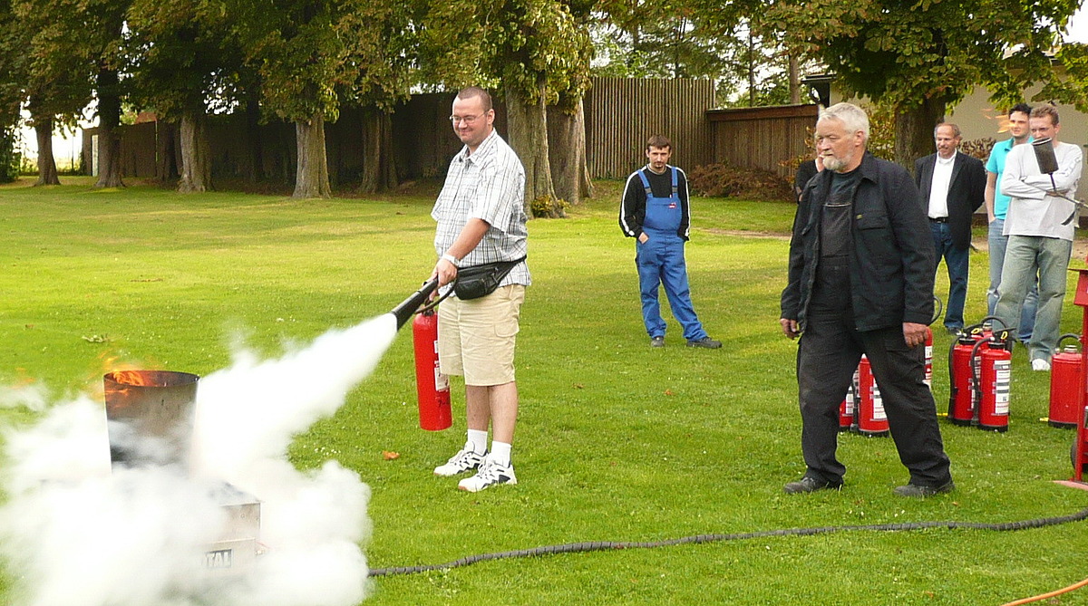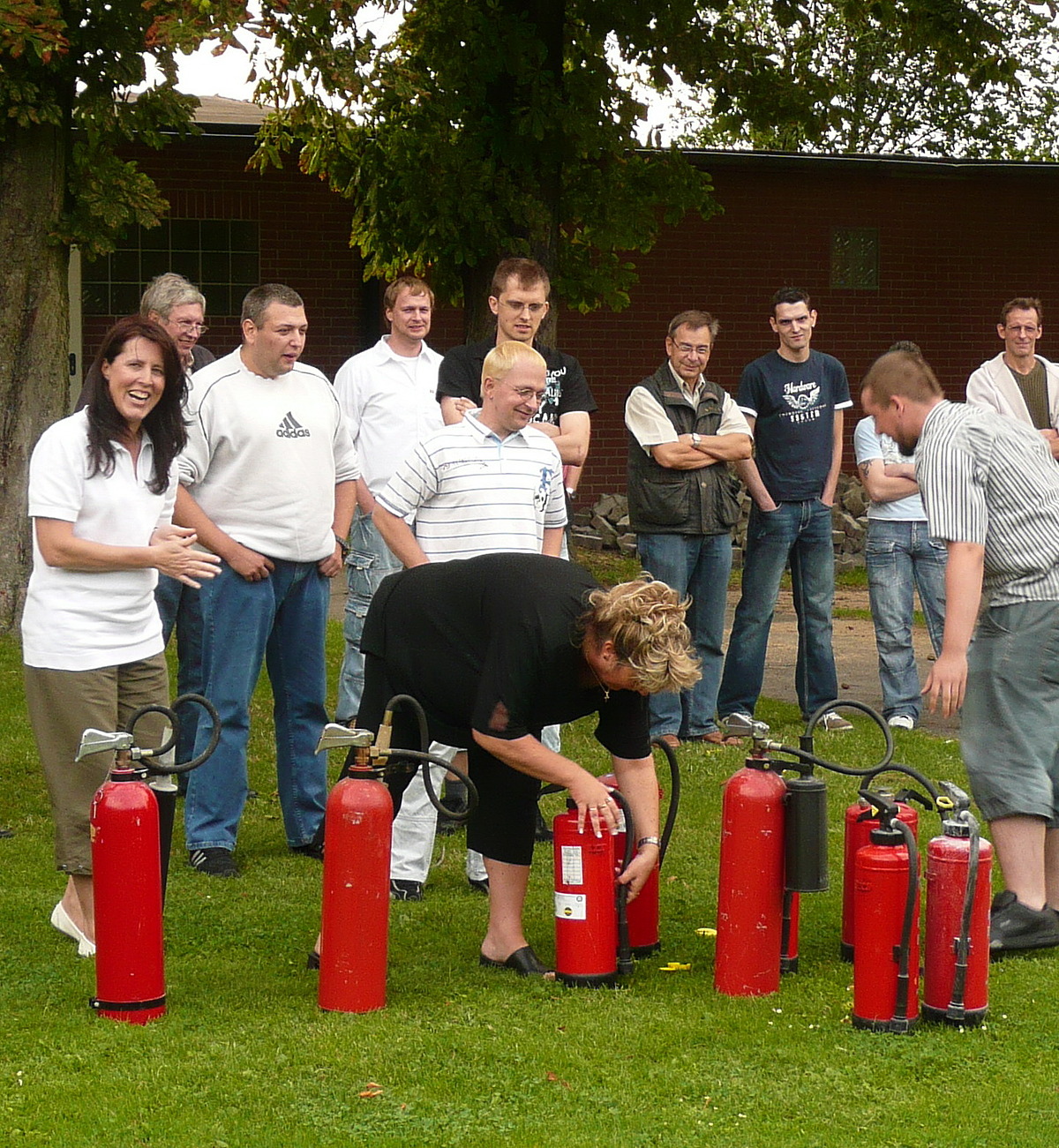 August 08 - Ein gemütliches Feuer im Kamin ist ja ganz schön, doch am Arbeitsplatz… „Viele Mitarbeiter hatten noch nie einen Feuerlöscher bedient, weil sie erfreulicherweise bisher keinen Brandherd löschen mussten. Sollte es aber doch notwendig sein, ist es hilfreich, wenn man sich schon einmal mit der Handhabung vertraut gemacht hat“, meint Katrin Schütte, Niederlassungsleiterin in Braunschweig.