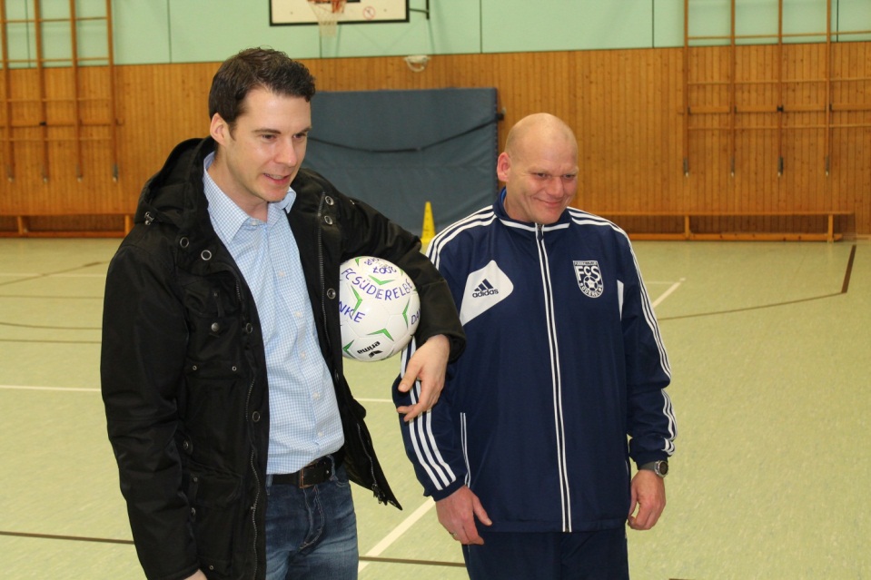 „Die Kleinen vom FC-Süderelbe haben sich gefreut wie Bolle“, so Olaf Glückstadt. Matthias Nehls, 2. Vorsitzender des FC-Süderelbe, kam sogar persönlich zur Übergabe vorbei: „ Es ist mehr als schwierig, Firmen für die Jungen zu begeistern, aber hier fängt unsere Arbeit erst richtig an. Der FC-Süderelbe hat schon einige Talente in die erste Liga gebracht. Mit ihrem Engagement machen Sie nicht nur die Kleinen glücklich, sondern die ganze Region. Denn dieses Interesse motiviert die Talente, sich konstant an ihrer Entwicklung zu begeistern.“