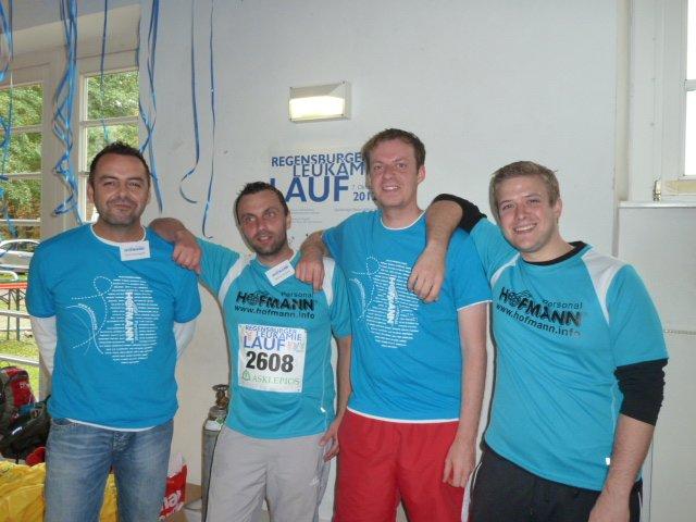 Oktober 2012 – Der Start war nicht einfach, denn bis in die Mittagsstunden goss es wie aus Kübeln, was den Helfern die Vorbereitung sichtlich erschwerte. Das tat der guten Stimmung jedoch keinen Abbruch: über 3.200 Läufer und Walker trotzten dem schlechten Wetter, um sich für die „gute Sache“ ins Zeug zu legen. Darunter 55 sportliche Läufer, die für Hofmann liefen. Dabei spielten weder Rekorde, noch Bestzeiten eine Rolle; vielmehr standen der Solidaritätsgedanke und die Hilfe für kranke Mitmenschen im Vordergrund: Über 120 neue Stammzellenspender konnten bei der Aktion Knochenmarkspende gewonnen werden. Organisator Dr. Michael Rechenmacher bedankte sich bei den Mitarbeitern der Firma Hofmann sowohl für die Spende als auch für das große Engagement.