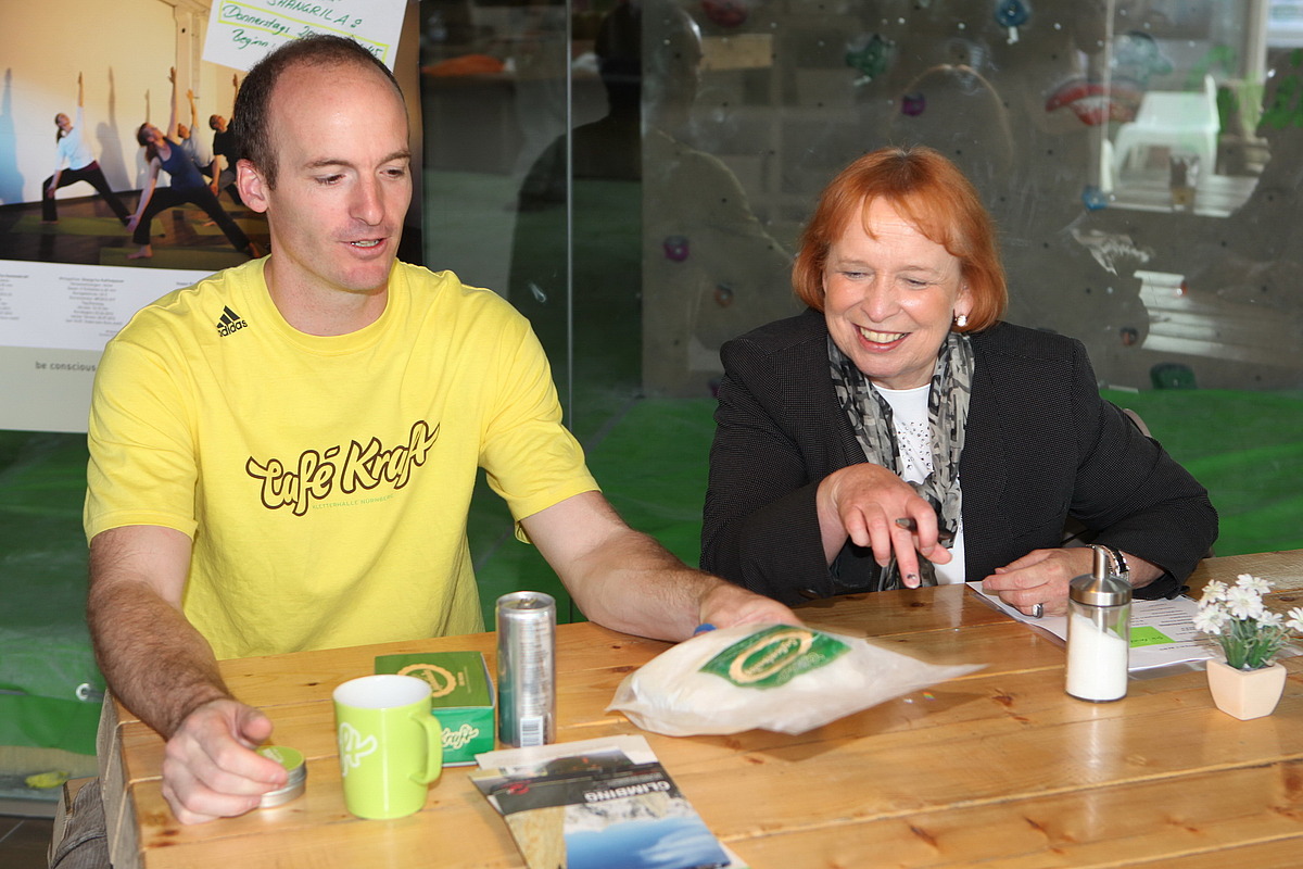 Die anderen Jurymitglieder teilten ihre Meinung und so übernahm die Unternehmerin gerne die Siegerpatenschaft für das „Cafe Kraft“ und kommentierte: Ich weiß nur zu gut, wie mühselig das Hinaufklettern ist und wie schwierig es auch im Geschäftsleben ist, schwierige Passagen zu überwinden und Abgründen auszuweichen.“