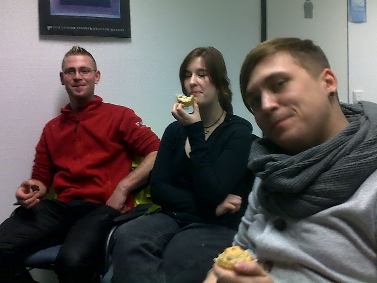 In der Zeit von 15.00 Uhr bis 17.00 Uhr kommen die Mitarbeiter, um sich mit den Kollegen auszutauschen. Anfangs nutzten nicht so viele die Gelegenheit zum gemeinsamen Plaudern, aber seitdem die anfänglich angebotenen Kekse durch selbstgebackenen Kuchen ersetzt wurden und sich die Veranstaltung ein wenig herumgesprochen hat, finden zu diesem Anlass immer mehr Hofmann-Kollegen den Weg in die Niederlassung.