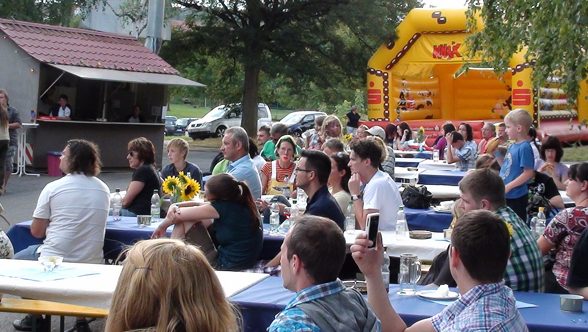 August 2012 – Jonglage, Hüpfburg, Einradfahren, Segway, Lagerfeuer – mehr geht kaum noch. „Spannung und Action“ war das Motto, unter dem der gemeinsame Kunden- und Mitarbeiterevent zum 5-jährigen Jubiläum der Niederlassung Schweinfurt stand, an dem ca. 140 Gäste samt Kind und Kegel teilgenommen hatten. Kunden und Mitarbeiter trafen sich nachmittags am Tivoli Sportplatz in Holzhausen. Zwar ohne den alteingesessenen „Holzhausener“ Onkel Dagobert - dafür aber mit einer Clownine, die ihr Publikum bestens auf Trab hielt.