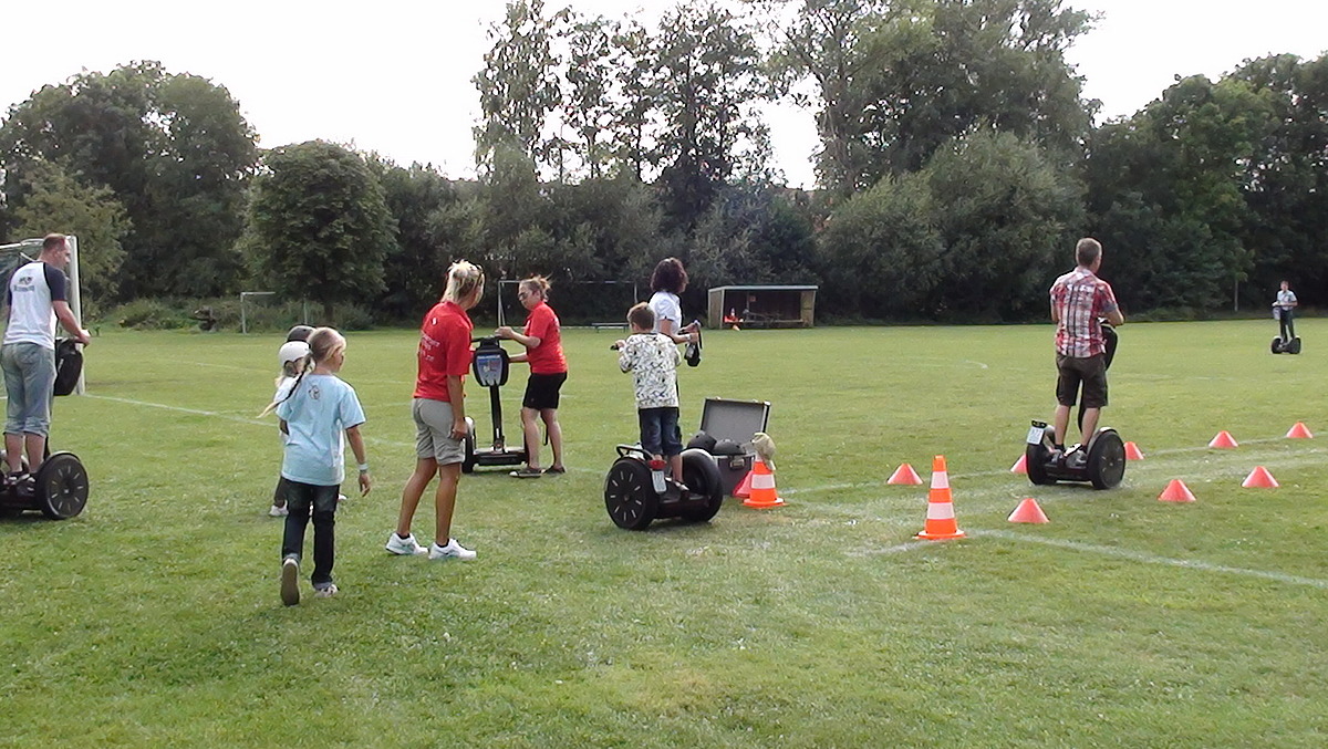 Dank des schönen Wetters konnte sich jeder im Freien nach Lust und Laune im Jonglieren, Seiltanz oder Einradfahren üben oder sich auf den Segways (elektrisch angetriebene Einpersonenfahrzeuge) auf dem benachbarten Sportplatz austoben. Die Segways waren im wahrsten Sinne des Wortes „der Renner“, und so mancher Jungsportler jagte mehrfach in Rekordgeschwindigkeit über die grüne Wiese.