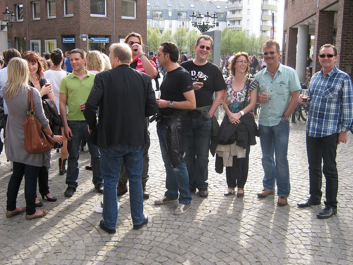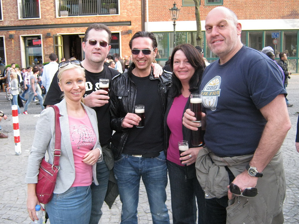 Nach so einem Spiel konnte man nicht einfach nach Hause gehen. Darum ging es gesammelt in Richtung Düsseldorfer Altstadt, um den Tag mit ein paar „Absackern“ in Form von Uerigealtbier (Uerige – alles andere ist Alt) vor dem gleichnamigen Brauhaus ausklingen zu lassen – mit open end natürlich! J