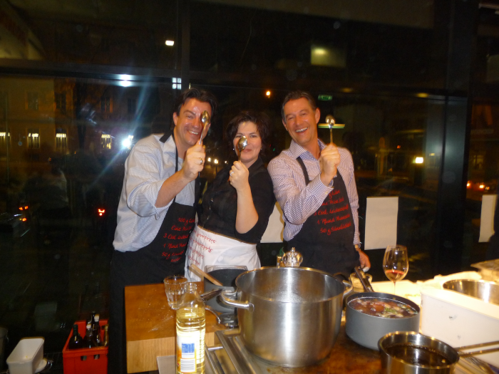 Januar 11 – Die Überschrift erstaunt Sie? Kein Wunder, doch es ist wahr. Die Erfindung des Kochens vor über 1 Million Jahre veränderte die menschliche Anatomie, vor allem das Gebiss: Es verkleinerte sich, was auch der Entwicklung des Sprechapparats und damit der Sprache förderlich war. Inzwischen hat das Kochen natürlich keinen Einfluss mehr auf die Sprache, höchstens auf die Kommunikation, da gemeinsamens Kochen wirklich Spaß macht, man nebenbei plaudern und beim gemeinsamen Essen den Abend so richtig genießen kann. Genau das haben wir mit unseren Gästen im Januar in der Kochschule der Markthalle in Regensburg getan.