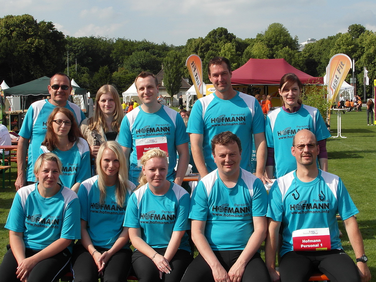 Juni 2012 - Mit insgesamt vier Hofmann-Teams zu jeweils drei Läufern und Läuferinnen nahm die Hofmann Region NRW im Juni am 5. HRS Business Run Cologne teil. Unter dem Motto „Laufe, Fiere, danze!“ gingen über 10.000 Teilnehmer von 650 Unternehmen aus Köln und Umgebung an den Start. Eine Fünf-Kilometer-Strecke lag vor ihnen.